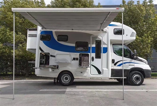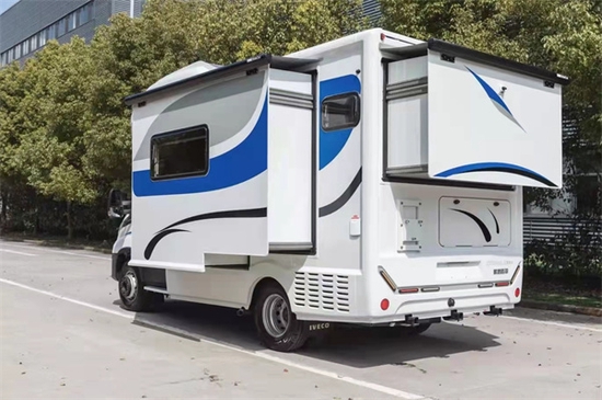 本款房车基于进口依维柯New Daily底盘打造,搭载3.0T涡轮增压柴油发动机,传动系统匹配来自采埃孚的8AT手自一体变速箱,配置上还有着ESP车身电子稳定系统、车道偏离预警、后轮高度可调空气悬架、空气弹簧座椅及座椅加热等配置,相比国产依维柯欧胜 (配置|询价)配置更加丰富。底盘方面新车后桥采用双排轮设计,通过增加轮胎与地面接触面积提升底盘承载力、行驶稳定性及制动性能。