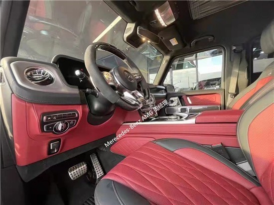 22款奔驰G63狂飙艺术家限量特别版的内饰既豪华又充满科技感,中控台多处均采 用碳纤 维材质覆盖,带彩色TFT显示屏的AMG仪表盘、AMG主菜单和单独 的挡位 显示器以及采用白色照明的AMG门槛。名贵的 选材及精湛的 打造都令 人拍案叫绝。双12.3英寸贯 穿式的显 示屏营造出了浓郁的 科技氛围。当然了,经典的“三把锁”按键自然不会缺席,并且设置 在中控台最为显眼的位置。