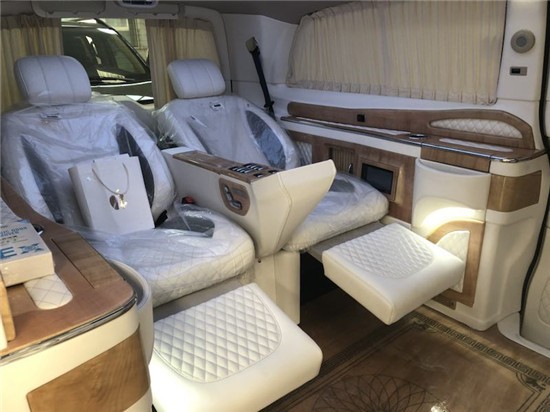 液晶电视下方的隔断吧台,隐藏着两个乘坐椅,轻轻一按座椅会自动升降出,方便人多时候乘坐,能让办公聊天洽谈方便。舒适的乘坐环境捕获了一群商务大咖的内心,这才是豪华商务代步工具。