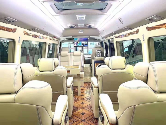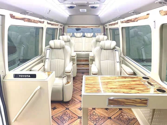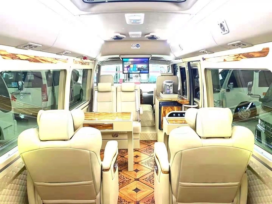 丰田考斯特 (配置|询价)华通丰业12座在内饰的改装上的相同之处也有很多,华通丰业丰田考斯特改装商务车在内饰上的改装项目有很多。座椅,地毯,窗帘,冰箱,隔断,影音系统,办公桌,秘书席等等,内饰上的每一步我们都可以根据自己的需要进行设计,打造一款我们专属的私人华通丰业高级座驾