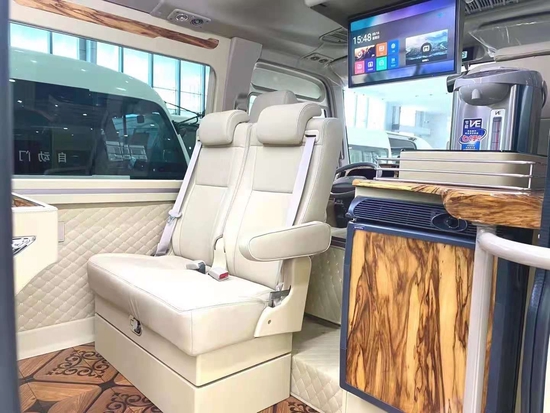 丰田考斯特华通丰业改装首先从内饰座椅的改装上来说,在改装的不同之处就是他是一个可以根据你自己的心意去改变的装置,华通丰业你可以根据自己的需要去选择座椅的数量,选择是采用普通的织物座椅,还是选择豪华的真皮座椅。同样我们还可以安装沙发折叠床,打造属于我们华通丰业自己的房车。