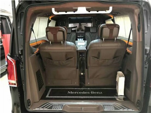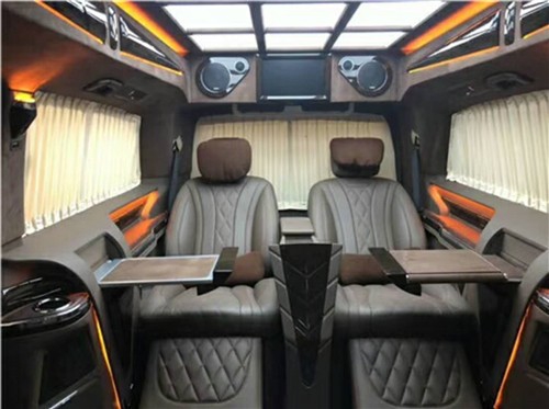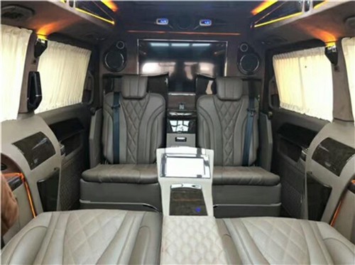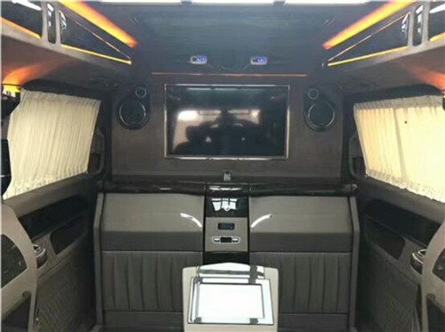 奔驰V260L隐藏六座带豪华的32寸升降液晶电视,屏幕尺寸超大影音画质清晰,5.1建伍音响,音质一流。奔驰改装房车内饰的奢华,车顶明亮的氛围灯与阅读灯、空气净化器等,所有配置为给您在出行之时享有豪华私享空间。