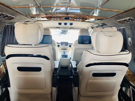 奔驰V级圣母峰-凯旋版全车地毯及窗帘均采用了进口的羊绒材质,在用料方面真的是很用心。第三排座椅不只可以坐人,在旅途劳累的时候也可以一键电动成床进行休息。 这款全新奔驰V级圣母峰-凯旋版,不仅有着非常亮眼的外观,在内饰豪华感方面营造的也非常到位。全车的KEDE siri语音控制系统和先进的人机交互系统都是其它竞品车型没有的,那么这样的一台国六V级座驾,你会喜欢吗?