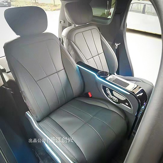 中间扶手箱带有无线充电功能和一个杯托,另外座椅的所有功能都是从中间扶手箱的两块面板进行控制,座椅无损安装,随时可以还原原车座椅。