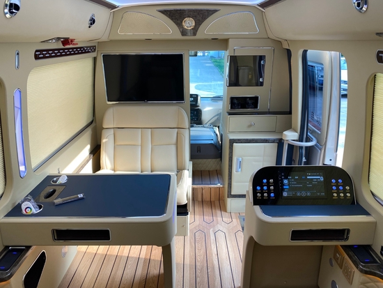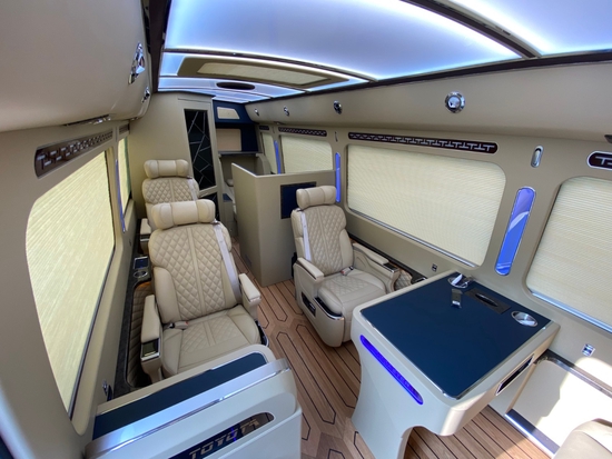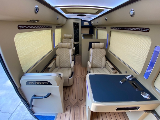 8座至尊版版中用了四张日本纯进口埃尔法顶配航空座椅,座椅不但舒适而且具有很多实用功能,比如座椅加热、座椅通风、座椅记忆、脚拖(有二级脚拖)、烟灰缸、折叠隐藏式书桌。丰田考斯特在内饰大的设计上增加了隔断的设计。隔断的增加有这样几点好处,首先从美观上来说,丰田考斯特增加隔断可以让驾驶席和乘客席之间成为两个独立的空间,我们可以尽可能的在内饰的设计上增加自己喜欢的色彩或者装饰。