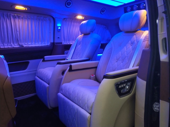 进口奔驰V250定制有几种风格可以选?奔驰V250凭借行政座椅,前排乘客侧的后排乘客即使在长途行车中也能够完全放松。仅需按下一个按钮,便可将座椅设置到舒适的角度,最大倾斜角度为 43.5 度。一个附加的伸出式腿部支撑进一步增强了舒适性。配备电动可伸出式脚踏板时,能够创造出一个适合睡眠的舒适座椅角度。当座椅靠背倾斜度较大时,可以通过一个气垫增强乘客的安全保护效果。发生正面碰撞危险时,它可在座垫下展开,从而防止乘客从安全带下方滑出(潜滑)。