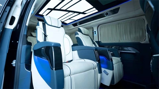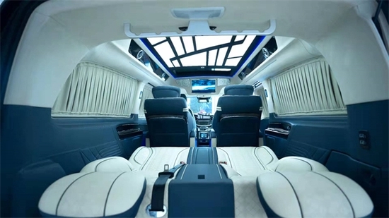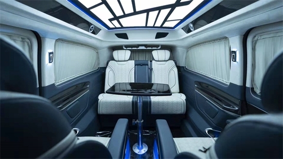 奔驰V260L改装迈巴赫VS680高顶无隔断七座,内部装饰充满法国式的浪漫,九宫格灯珠镶嵌的椭圆形豪华顶棚造型设计气势磅礴,沿车身走向,两端与驾驶室隔屏和后门相衔接,形成古典对称的流线型图案。奔驰V250改装商务车全车新款电动精美布艺窗帘、控制车内电器的触摸屏操作,无不体现至尊豪华的商务形象,7座,家居、商用适合不过。