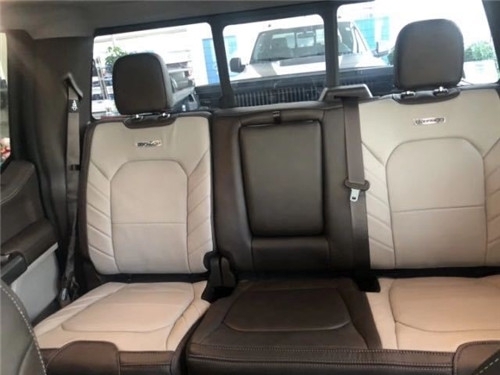 2021款福特F150白金版 福特猛禽F150皮卡真皮座椅包裹性很强,无论是越野还是长途旅行,都很舒服,丝毫不感觉到这大家伙的压抑,二排空间也是十分宽敞,乘坐四个身材高大的乘客绝对没问题。座椅折叠起来可以放一个冰箱,而且门上储物格空间也是够用,虽然不像公羊后排那么豪华,有简易床,但是这种实用的理念就是福特的宗旨。