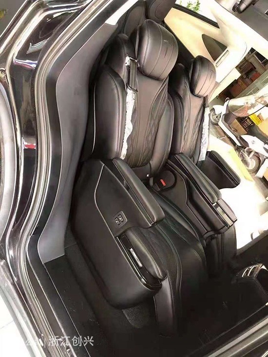 而且有一个好处是靠背再也不是90°角了,靠背可以单独的电动调节,最大可达150°,等同于半躺状态,这样可以提供多种坐姿,甚至可以葛优躺,另外座椅带有电动腿托功能和原车一样的电动调节功能。