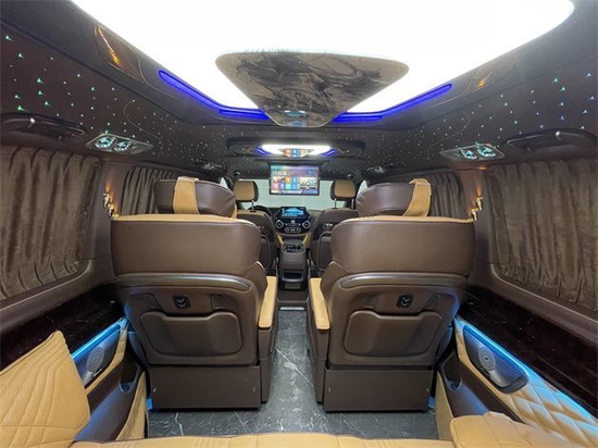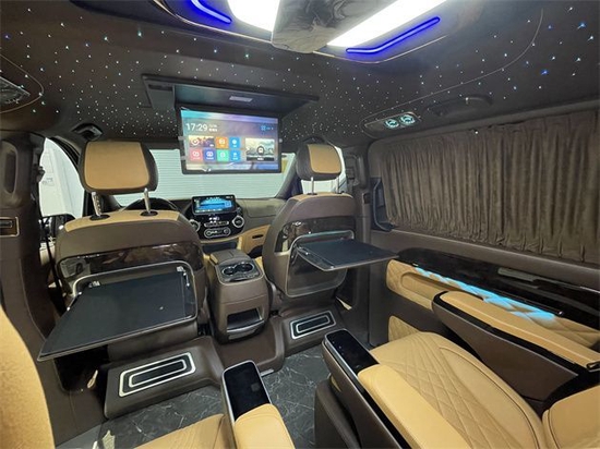 现在奔驰商务车在国内的MPV市场可谓的非常火热,其中奔驰本身的品牌效应就已经得到了大家的普遍认可,再者,奔驰的价格空间涵盖了中高档的客户,从二三十万到百来万的车型均有。奔驰商务主要就是福建奔驰,分为两款车型,一款是威霆,一款是V260系列,威霆属于奔驰商务的基础款,原裸车是比较简陋的,经过升级改装之后会有不同的效果与特色,也是由于本身裸车价格比较适中,升级改装后的威霆也是成为人们看商务车的必看车型之一了,今天我们了解的就是奔驰威霆 (配置|询价)改装中的大满配,一台平顶双开门迈巴赫版威霆。