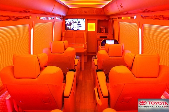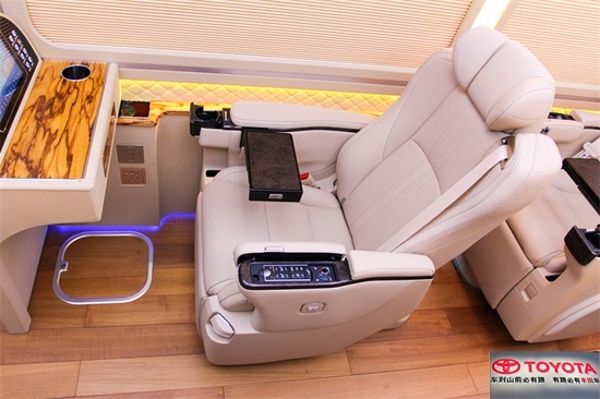 既不会占用车内的空间,还能够在一定成度上提高内饰的豪华感。丰田考斯特12座商务车,在改装的过程中不仅仅注意车内的美观和尊贵,更急考虑了乘驾人员对于舒适性和实用性的追求。丰田考斯特12座改装商务车在驾驶席的改装上可以采用加大加厚加宽加扶手的改装设计。丰田考斯特12座改装商务车在内饰乘客席的选择上,可以采用真皮座椅,也可以增加360度可旋转的好空首长席座椅。舒适的座椅再配备高档的办公桌,丰田考斯特12座改装商务车,丰田考斯特商务车的根本配置丰富,设计低调,所以在改装方面丰田考斯特就增加了很多细节,这些细节的设计恰正是丰田考斯特改装商务车的怪异和尊贵的表现。