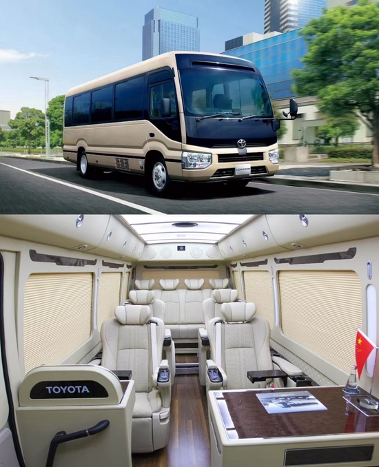 丰田专卖店新款柯斯达 (配置|询价)、考斯特、9座、10座、11座、12座、13座、15座、16座、17座、19座、20座、23座现车销售,豪华内饰改装。考斯特改装的可行性报告考斯特改装价格,丰田考斯特改装12座商务车从外观对的设计上来说,在原车端庄的米黄金色的外观的设计下,丰田考斯特改装商务车更加注重便捷性以及安全性的考虑。