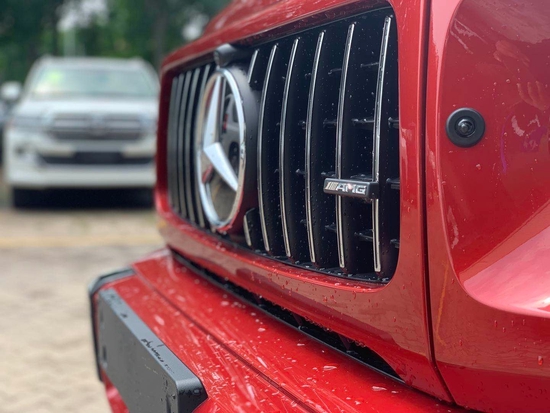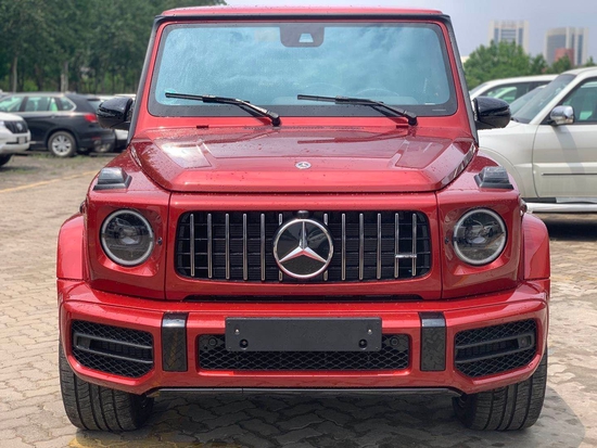 奔驰G63 (配置|询价)经过全新改款造型设计完全沿袭最初形态,但新加入了LED灯光技术,中网由12根竖置镀铬饰条组成,保险杠进气口相比G500造型也更具有攻击性 ,其细节方面也变得更加细腻