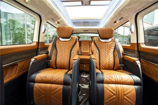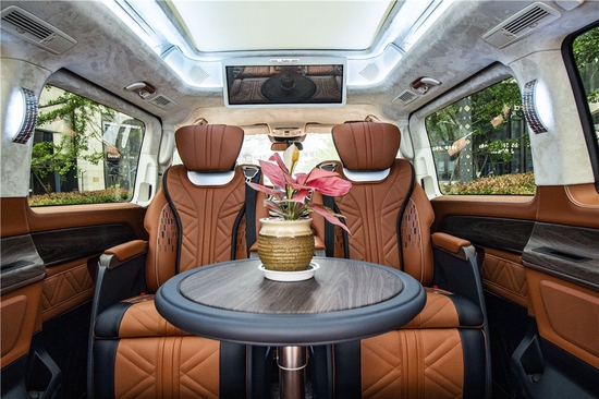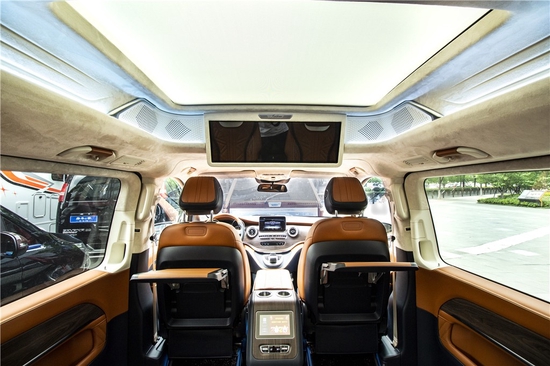 2019款奔驰V260L改装商务车第二排头等舱座椅为带电动式、加温、推拿、自然通风功能的航空公司级长官席,可顺着上空上导轨进行一键气动式前后左右拖动,有关这类智能化系统的乘座感受,是原装车系愚钝的手动式拖动方法所自愧不如的。车里的车内氛围灯打开后,奔驰V260内舱越来越灵便变化多端,氛围还可以依据餐厅灯色调转换而转变,关键的乘座坐椅配备的单独的推拿功能,自然通风加温,一体腿托,功能丰富,乘座温暖,是外事接待出行的代步出行优品。