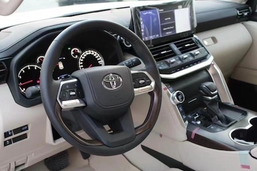 2022款丰田酷路泽LC300走进车内,新车内饰迎来较大的变化,配备了机械指针+液晶显示组合仪表,并搭载全新造型的三辐式多功能方向盘,提升了车内科技感。同时中控台下方物理按键布局也进行了相应调整,让日常操作更加便捷。