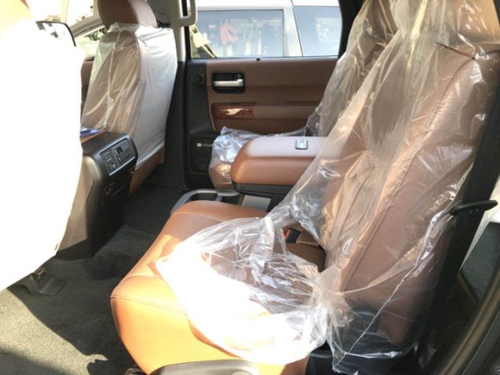 丰田红杉5700前排座椅十分宽大,腰部支撑调节和腿部支撑调节可以让您找到专属于自己的舒适座姿,厚实的坐垫质地柔软,而且通风功能可以大幅提升乘坐舒适性。
