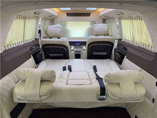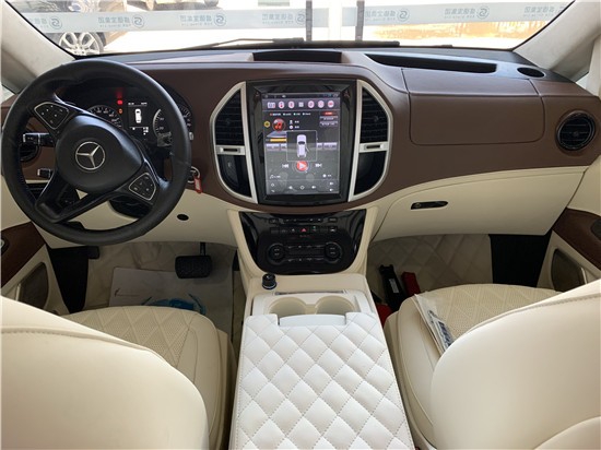 奔驰威霆 (配置|询价)改装高顶无隔断7座商务车,奔驰VITO商务改装车是在奔驰威霆裸车基础上进行改装,14寸显示屏。主副驾驶以及侧门进行软包,进行隔音处理,以降低车内噪音,奔驰威霆改装无高顶无隔断7座商务车主副驾驶冰箱换成超大11L制冷冰箱,最低可达零下18度。