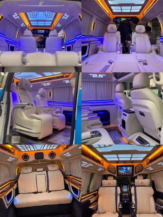 奔驰威霆改装项目(包括但不限于):航空座椅、三连座沙发、柚木地板、全隔断、带升降电视、半隔断吧台、吧台隐藏座椅、电动中门、电动尾门、导航、桃木方向盘、方向真皮包、覆仪表台真皮包覆、驾驶座真皮包覆、驾驶座电动调节、驾驶座电动加热、驾驶座电动通风、驾驶座电动按摩、驾驶座气动按摩、驾驶座加棉、驾驶舱鹿皮顶、后舱鹿皮顶、后舱星空顶、九宫格顶灯、ABCD柱鹿皮包覆、遮阳板鹿皮包覆、驾驶位门板真皮包覆、中门门板真皮包覆、后尾门门板真皮包覆、全车侧壁真皮包覆、全车私密手动窗帘、迎宾踏板、主副驾驶中央扶手箱、主副驾驶扶手带冰箱、吸顶电视、主副驾驶靠背小桌板、可拆卸小桌板车、内氛围灯、吊顶、外观包围、轮毂、大灯、高顶及合格证、等其他项目。