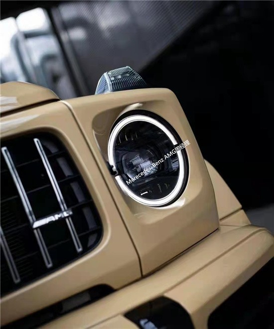 22款奔驰G63 (配置|询价)大漠猎游侠限量特别版整体延续了经典的方盒子造型,细节上则是略微调整,各种圆润的弧度也能体现出设计师在经典和中力图打造的亮点。22款奔驰AMG G63大漠猎游侠限量版独特的外观造型设计,经过重新设计的前进气格栅与两侧圆形大灯相互呼应。