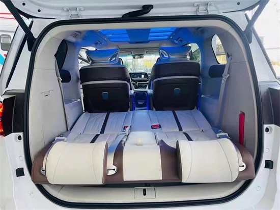 最为舒适的第二排座椅了,电动和手动相结合的“头等舱座位”支持加热、按摩,靠背向后延展角度也是很大的,这时候买点小吃,冻饮,躺着舒舒服服的享受生活,真的十分惬意,前排的驾驶员内心此刻一定是满满的羡慕。第三排的空间感也是不错的,没有特别紧凑的感觉。别克GL8改装航空座椅对中间的通道最大可能的进行保留,可以顺利进入到第三排,别克GL8改装航空座椅可以电动调节靠背角度,给您非常舒适的乘坐体验。