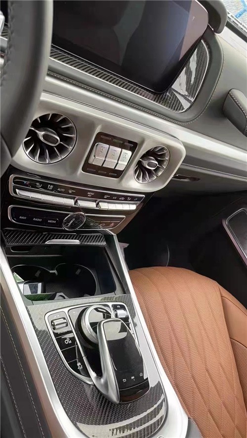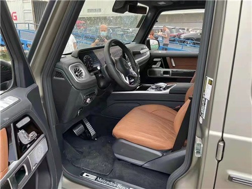 2021款奔驰G550车内采用深色调与桃木装饰,黑色真皮运动座椅非常舒适,方向盘以高档真皮包裹装饰,触感极其细腻。配有桃木装饰的操控台,稳重大气,同时提高了整体的质感。各种功能按钮应有尽有,丝毫不次于豪华轿车的功能。