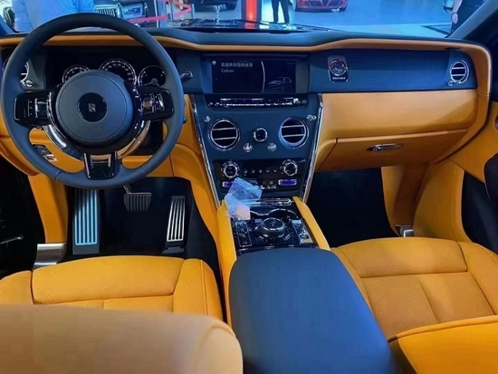 劳斯莱斯库里南整体内饰都运用高档的真皮覆盖,在舒适度和档次上都十分出色,在副驾驶座前还镶嵌一块石英表,彰显了属于劳斯莱斯特有的贵族气质。标志性的对开式车门设计,两扇车门均可开启乎90度,以便车内成员方便上下车,配合大尺寸的天窗,让车内乘客感觉更加舒适。劳斯莱斯库里南内饰将劳斯莱斯的奢华与简洁对称的功能之美融为一体。中控面板的边框由手工打磨的金属条包裹,不仅将上部的仪表板和中部的控制台连接起来,更通过容纳仪表板上的横向设计元素,增加了掌控感。