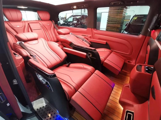 全车配备隐私窗帘,壁柱灯,翻毛皮顶棚,高级感十足。在如此豪华的车内,怎么不来瓶八二年的拉菲,再点上一首老歌,回忆过往,品味人生!