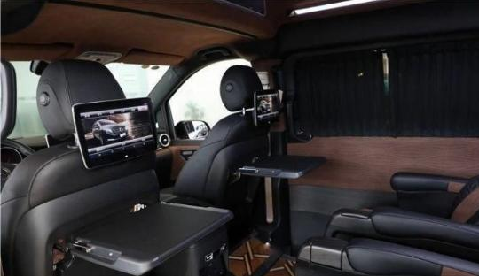 前面正副驾驶座椅后面搭载了后排娱乐系统,下面还有可折叠的商务桌,从氛围上和使用上给人的感觉都非常愉悦。