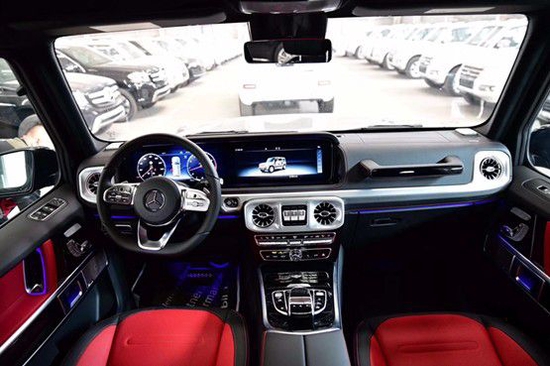 21款奔驰G550车内采用深色调与桃木装饰,棕色真皮运动座椅非常舒适,方向盘以高档真皮包裹装饰,触感极其细腻。配有桃木装饰的操控台,稳重大气,同时提高了整体的质感。各种功能按钮应有尽有,丝毫不次于豪华轿车的功能。