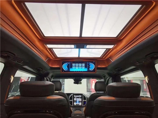 顶部搭配层次分明的光纤灯,配上繁星点点的横条灯带,即梦幻又高级。一切的搭配都只是为您展示这款奔驰威霆巴赫版的奢华与不凡。同时本款威霆高顶7座高端私人定制改装商务车,不仅在视觉上还是触觉上都能让乘坐着感到身心愉悦。