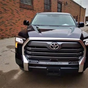 22款丰田坦途外观部分,新车采用了全新的设计风格,最具辨识度的莫过于前脸这块非常大的进气中网设计,通过亚光银的饰条搭配黑色蜂窝网状的造型使得视觉上整个中网的面积似乎从车标一直拉通到前保险杠的位置上,第一感觉无疑是非常野性的。