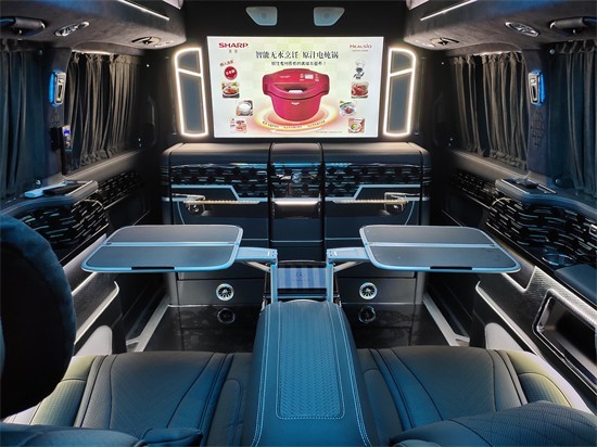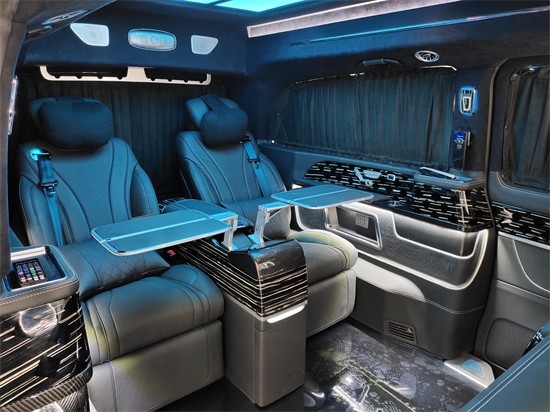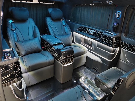 奔驰V260L4+2总裁版,驾驶舱与后舱是分隔设计的,形成两个独立的空间。42超大液晶升降电视及多功能吧台,整车环保材质包裹,实木地板铺设,搭配进口马毛地毯。奔驰V260L4+2总裁版吧台与座椅完美结合,下方是隐藏饰酒柜,合理运用了车内的空间,大佬们接待贵宾不失格调。顶部是最新巴赫版顶灯,点点星光象征着大佬们的事业巅峰。后排搭配琥珀纹木饰间和碳钎维组合,让整个内部空间运动时尚又有高级感。大家都知道只有在超跑或顶级豪华车上才会运用碳钎维,所以在价值上这款车也是极致的奢华。