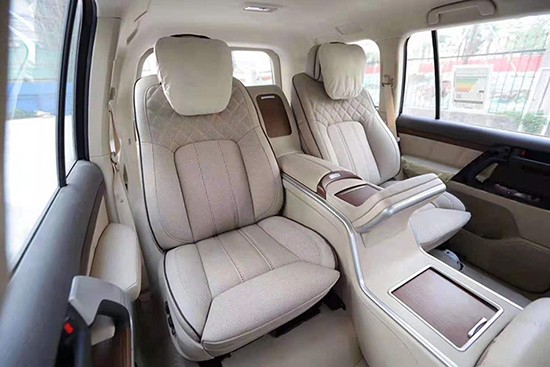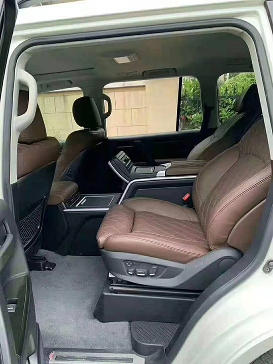另外座椅带有通风、加热、按摩等功能,还有手机无线充电等功能,这些功能都是之前没有的,实际上市面上也没有什么SUV或者轿车的后排有这么多功能,而我们觉得乘坐的感受和驾驶的感受一样重要,所以才会有航空座椅的出现,并且座椅带有十六项调节:电动头枕、前后移动、靠背180°调节、座垫伸缩延长、座垫高低调节、腰部高低调节、侧翼调节、靠背半部调节。这些调节足够把兰德酷路泽拉上并比商务车舒适度的高度。