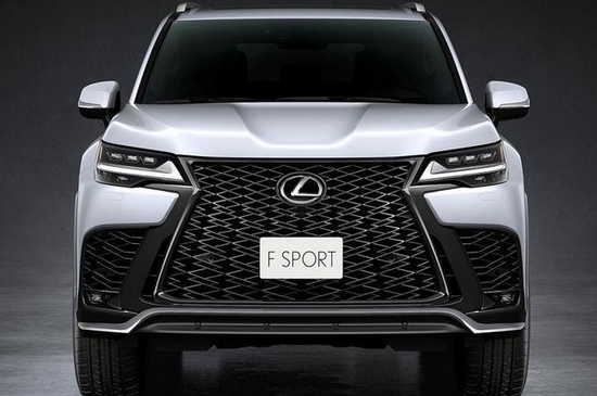在外观方面,LX600提供Ultra Luxury和F SPORT可选,简单来说,就是分为豪华版和运动版,二者主要是在前脸有所区别,前者采用7组双横幅式设计,表面由哑光银色点缀,匹配22英寸的多幅式铝合金轮毂,看上去符合豪华版的特征;后者则采用大尺寸的黑色中网,内部由大量网格组成,与熏黑的22英寸多幅式运动风格轮毂相结合,整体看上去确实要更加运动。