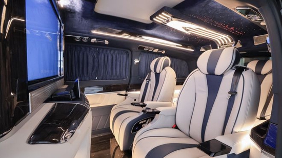 这款保姆车在最新奔驰V (配置|询价)260L改装定制的,外观和内饰都能符合老板们的出行所需,毕竟外观是面子,内饰是里子,这款车外观不用多说,改装的非常到位,而且近3米5的轴距,车身尺寸够大才能显得舒适。