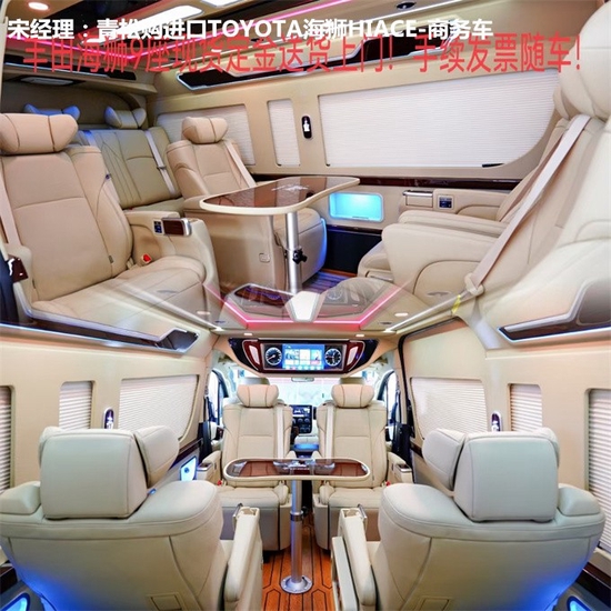 丰田海狮改装商务车为了提供给我们舒适的乘车环境,车内采用最舒适的音响设备和,丰田海狮改装商务车为我们在旅行中提供了优质音乐和旋律的需要,再加上车内增加了隔音设备,对回声的处理,丰田海狮改装商务车,更是为我们提供了最舒适的环境,宽敞的空间优雅的内饰,动听的音乐,这一切都是丰田海狮改装商务车的独特之处。座椅构造更符合人体曲线,令旅途行车倍感舒适。同时设有安全扶手,为乘客提供安全及舒适感。外形上,丰田海狮依然保持了现款在售还是车型方正的大外壳,15寸轮毂造型和实用化的行李架与尾门梯。