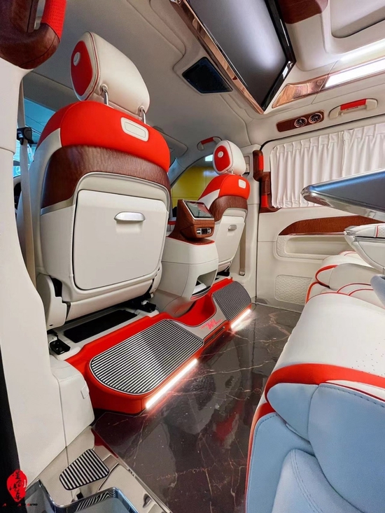 进口奔驰V改装迈巴赫VS680如同AMG品牌,迈巴赫品牌成为奔驰品牌的子品牌,是奔驰S级 (配置|询价)的延展。从外观上看,迈巴赫独有的“2M”标识只保留在C柱,后备箱上方有“MAYBACH”字母标识,车头和车尾处已经被奔驰的“三叉星”所取代。2022款奔驰V加装了一整套的空气动力学套件,使整体车身更加具有流线型的感觉,同时其还加入了辅助LED行车灯、四出尾排等额外套件。而根据客户需求,Brabus还可以提供18或19英寸的轮圈以及一套运动短簧避震系统,整体车身可以降低15到25毫米左右。