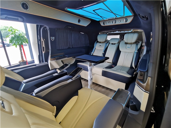 奔驰V260L改装高顶7座 大空间大格局。这款国内顶配定制改装的奔驰V260L巴塞罗那版,外观顺畅的车身流线搭配高顶设计,摆脱了传统商务车的笨拙,使奔驰V260L看起来十分的稳重大气,内饰通过改装实现了满足商务接待、洽谈、出游等各种出行需求。