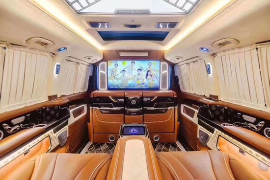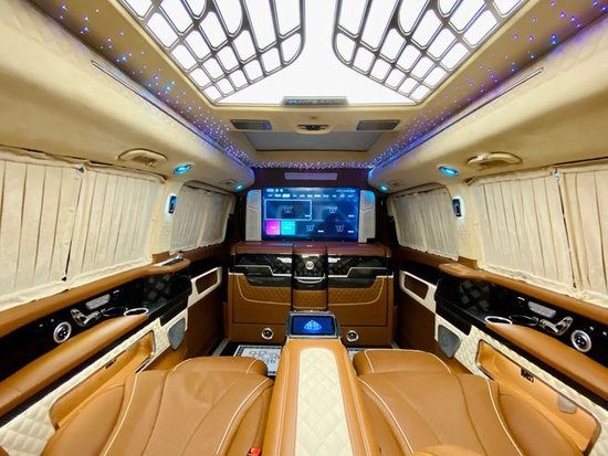 梅赛德斯·奔驰V260L进行了改装,可以隐藏六个座位,32英寸高清液晶电视可以实现电动升降,音频设备是日本的Kenwood 5.1声道音频,它还可以为您带来视觉享受和旅途中听到!