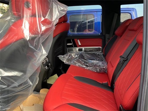 21款奔驰G63 AMG车内用料以真皮为主,部分碳纤维及铝合金装饰件。如今的G级是纯粹的豪华车了,跟那些纯粹越野车不一样的车内配置很高,像这个座椅除了各种电动调节功能外,还带有腰托腿托以及加热、通风、记忆功能。座椅还是很厚实,都是真皮材质有菱格纹的走线,红黑配色的座椅也是这台Edtion版的特色所在。