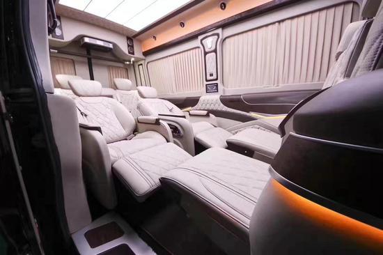 20全新进口奔驰斯宾特商旅车头顶可改成浪漫情怀满天星顶灯,犹如在静寂的夜空中翱翔,脚踏高档柚木地板,坐在私密的移动包厢内,老板能享用彻底私密的影音包间,具有如家般的精致小生活。