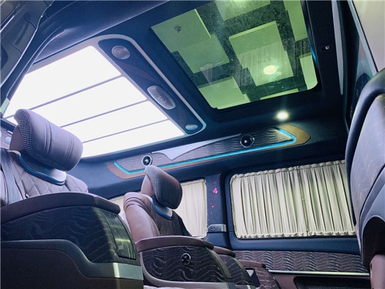 奔驰V260迈巴赫VS980房车贵宾舱则用采用豪华皮革、麂皮绒包覆,前后舱采用50寸高清液晶电视(电视可一键升降)+吧台的实用隔断,柏林之声殿堂级音响环绕系统+独立空调控制开关组合,给您舒适与娱乐相结合的享受。