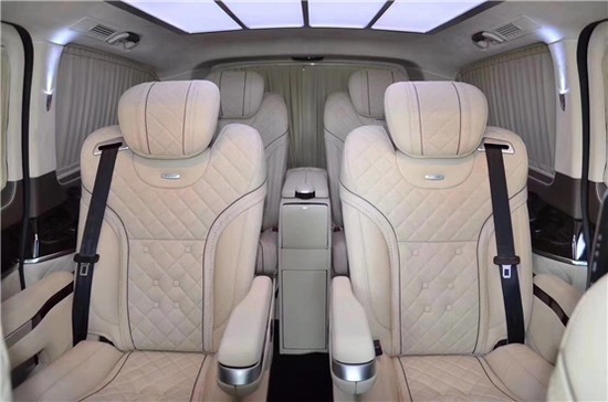 进口奔驰V250改装迈巴赫VS680凭借行政座椅,前排乘客侧的后排乘客即使在长途行车中也能够完全放松。仅需按下一个按钮,便可将座椅设置到舒适的角度,最大倾斜角度为 43.5 度。一个附加的伸出式腿部支撑进一步增强了舒适性。配备电动可伸出式脚踏板时,能够创造出一个适合睡眠的舒适座椅角度。