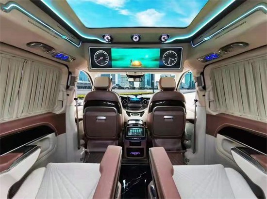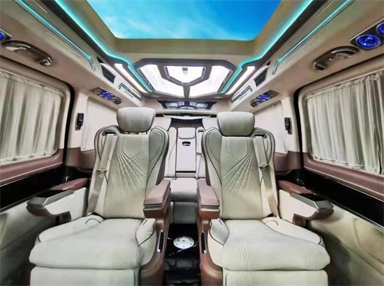 奔驰V260L改装商务车第二排航空座椅为带电动、加热、按摩、通风功能的航空级首长席,可沿着地面上滑轨实现一键电动式前后滑动,对于这种智能化的乘坐体验,是原厂车型笨拙的手动拖拽模式所望尘莫及的。这款车还配备七色氛围灯,让您的旅途更加惬意。