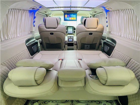 奔驰威霆改装多少钱 这才符合你的气质。奔驰威霆Vito改装7座无高顶隔断改装车奔驰威霆房车车舱顶部配置迈巴赫灯光。座椅呈2-2-3型排列,整洁美观,真皮制作,柔软舒适,中排电动加热按摩,可多方位调节,后排可电动成床,推崇精品座驾。空气净化系统,奔驰威霆Vito改装7座改装车自动恒温空调附花粉过滤系统,给您一个舒适的乘坐空间。车舱内座椅全部采用真皮制作,每一个合缝处的处理十分的细致,充分体现出了德国人的严谨,也符合商务人士的性格。