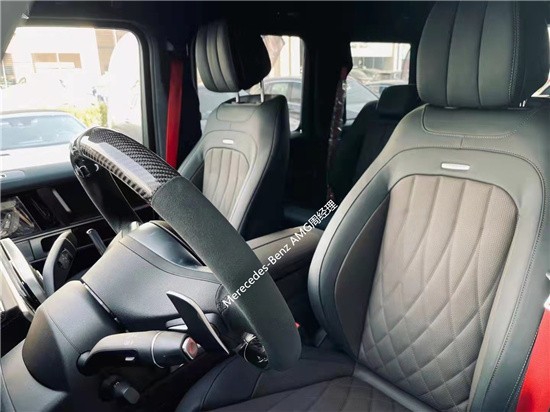 22款奔驰G63天生越野族限量版内饰方面,奔驰的设计绝对可以用惊艳来形容,无论是经典车型还是超豪华车型甚至是入门级的豪华车上,奔驰的内饰都会让你眼前一亮,当然了这也是奔驰的一个特色。所以这部全新的G63在内饰的表现上也是情理之中的,但是细节上还是有些小小的意外。这种感觉是打开车门的瞬间就能够感受到的。首先仪表和中控屏依旧是采用了同一款液晶屏显示,第一感觉就是科技感爆表。而其他方面例如方向盘,空调出风口,挡杆等等的设计充满设计感。