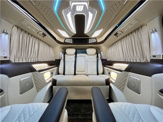 以卡漠兹系列威霆车型来看,该车外观部分在原厂奔驰威霆基础上升级有高顶结构,并增加车身拉花、车身包围套件、双边共四出排气造型等。该车定位为卡漠兹奔驰威霆高端定制系列。