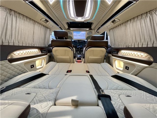 后舱配置独立办公小桌板,吸顶隔断互联网电视,环绕音响,独立控制总台,镀铬迎宾踏板,和全车铺设的高光镜面地板,凸显豪华质感。