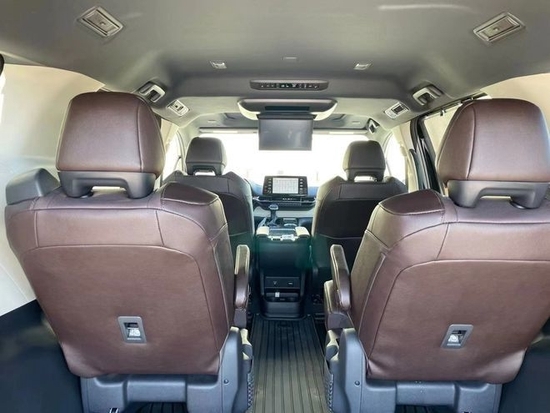21款丰田塞纳内部空间非常大,充分发挥了MPV的优势。座椅全部采用双色真皮,第二排座椅的腿部支撑,放倒第三排座椅,加上腿部支撑,完全变成了两张摇篮床,让长途旅行多了一份舒适。宽敞舒适后座空间,配上该车安全稳定的行驶系统,保证途中也能舒适地谈上生意。