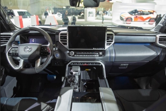 全新丰田坦途皮卡车内乘坐、后排座椅宽大,足以满足身高195cm的贵宾,第二排座椅可以完全折叠收起,为乘客提供更宽敞的腿部空间,已经达到了中大型车的水,完全可以满足舒适乘坐的需求,部分特殊的装载给您的路途更添信心。